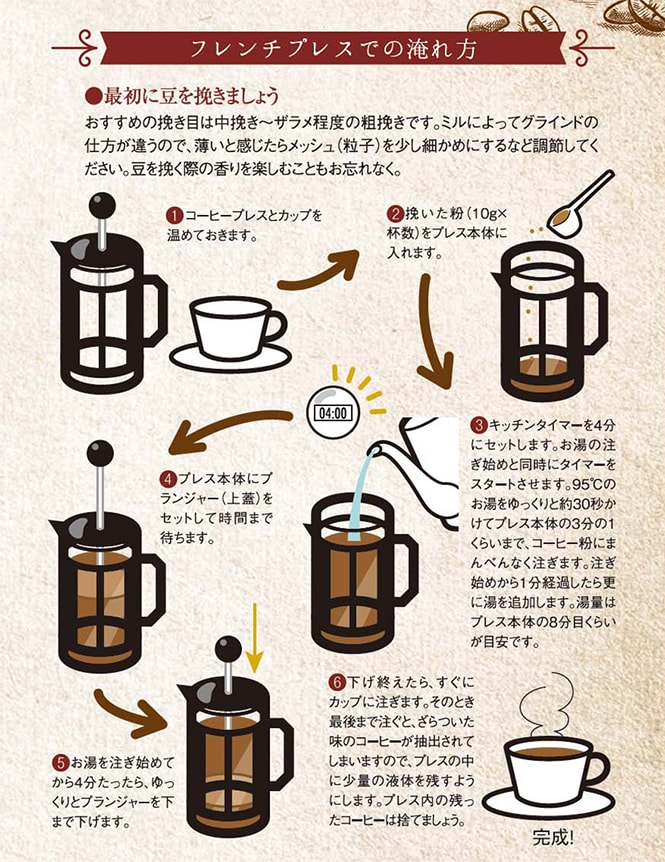 「軟水」でいれるとマイルドで酸味の立つ味わいになり、コーヒー本来の特徴が出やすくなります。
