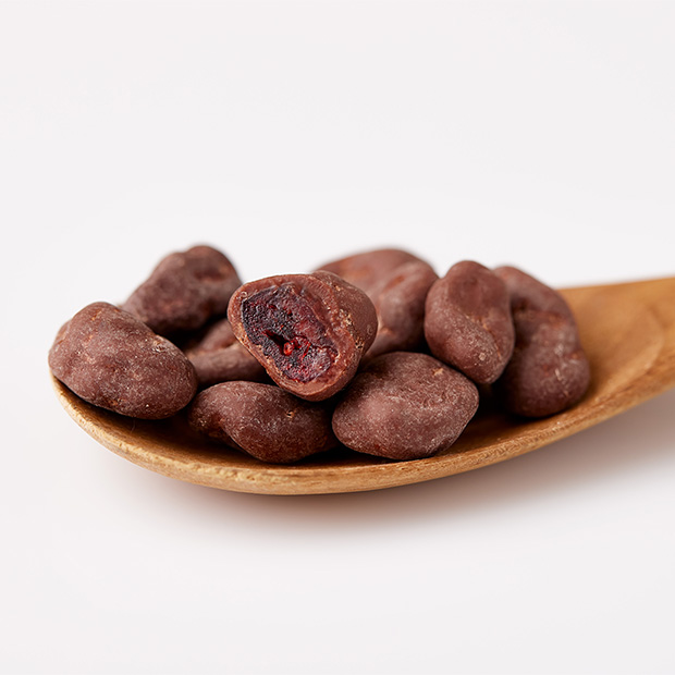 ドライクランベリーを、ミルク・ビター2種類のクーベルチュールチョコでコーティング。口いっぱいに広がる甘酸っぱさとチョコの甘みが絶妙です。アメリカ産ドライクランベリーとクーベルチュールチョコレートは、共に海外の有機認証を取得しています。カカオ(カカオマス、ココアバター)・粗糖・全粉乳だけの、シンプルな原材料でできています。添加物は不使用、精製度の低い茶色い粗糖を使っているので安心してお召し上がりいただけます。