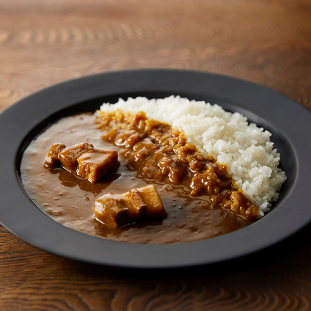 柔らかい豚バラ肉がごろっと入った和風仕立ての甘辛カレー。国産豚バラ肉を柔らかくなるまでじっくりと煮込み、炒めた玉ねぎでコクをプラスし、醤油ベースで仕上げました。ニシキヤキッチンのこだわりカレーをぜひご賞味ください。