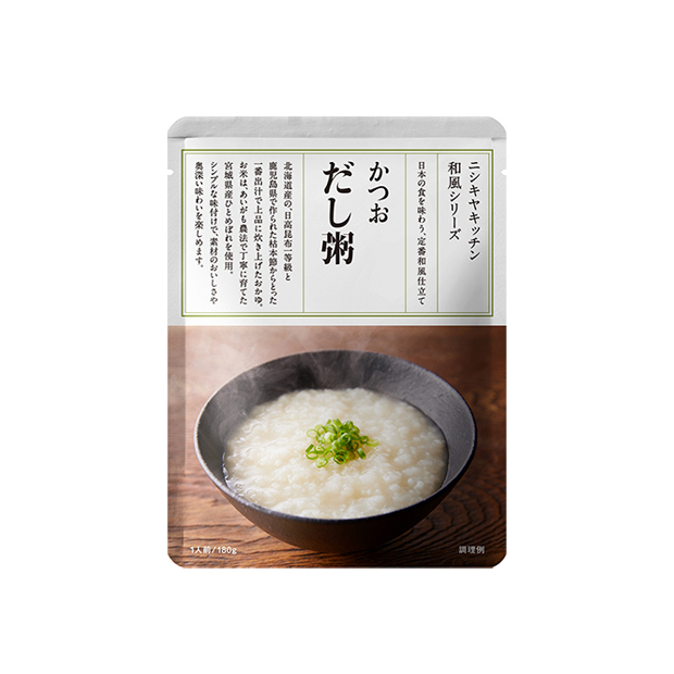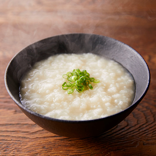 北海道産の、日高昆布一等級と鹿児島県で作られた枯本節からとった一番出汁で上品に炊き上げたおかゆです。