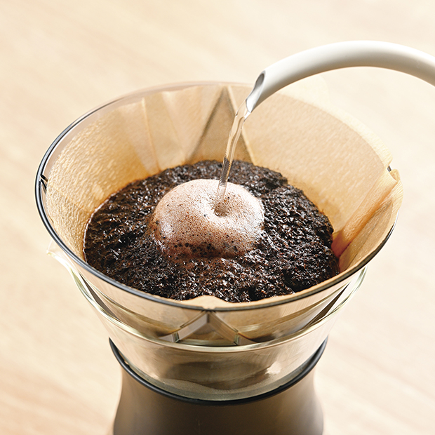 抽出方法はとても簡単で、蒸らしもなく、お湯を一回注ぐだけで毎回安定した味わいを再現できます。手軽さの秘密はドリッパーの内側にある星形の溝。