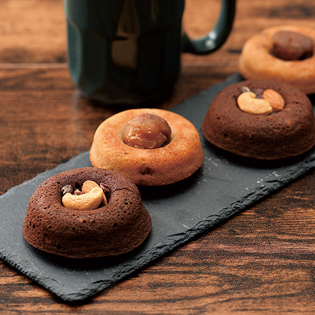 しっとり濃厚なチョコレート生地に、香ばしくローストしたくるみとカシューナッツを練り込み、奥行のあるフィナンシェをつくりました。