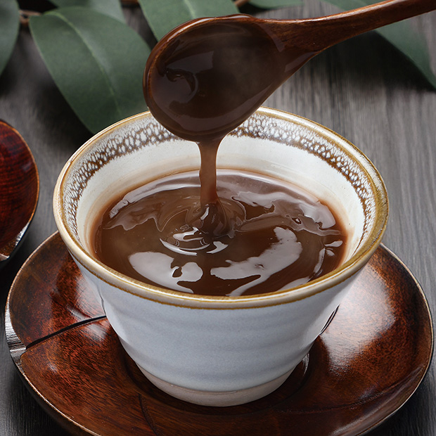 150年の歴史をもつ「廣八堂」のくず湯は、古来より伝わる伝統的な製法に基づき作られた本葛粉を原材料として用いています。くず湯はとろみがあるため冷めにくく、寒い日に飲むにはぴったりです。 口に運ぶとなめらかな口当たりと共に、ほのかな甘さが心地よく広がっていきます。 冷えを感じるとき、ほっと一息つきたいとき、この一杯が心と体に優しく染み渡り、疲れた胃腸にも負担をかけません。 心まで解きほぐされるような至福のひとときをおお過ごしください。