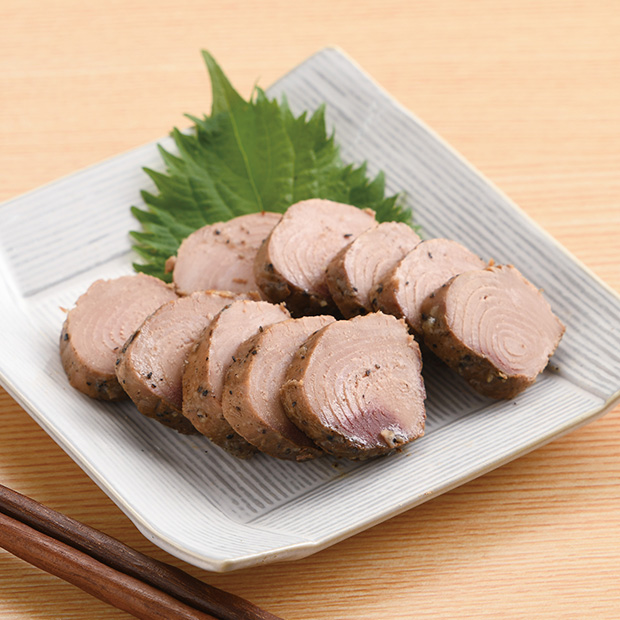 燻した鰹に特製玉ねぎオイルとスパイスで味付けをした鰹のなまり節です。スモーキーな香りとブラックペッパーのスパイシーさが後を引く味わいに仕上げました。