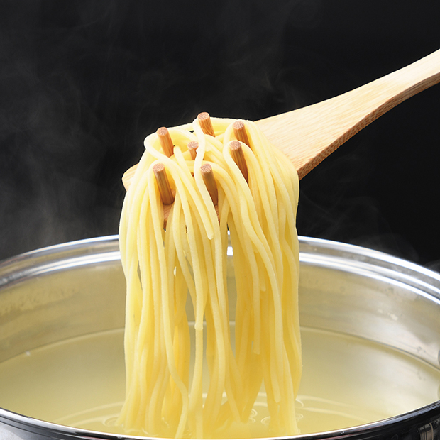老舗蕎麦メーカーが作る本格生パスタです。茹で時間はわずか4分で、忙しい日もあっという間に本格パスタが完成。もちもちとした食感は一度食べたらやみつきになります。保存期間が通常の生パスタよりも長いので、いざという時のために備蓄をする、循環備蓄にもおすすめです。