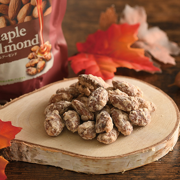 カリッと香ばしくローストしたアーモンドを、煮詰めたメープルシロップで丁寧にコーティングしました。